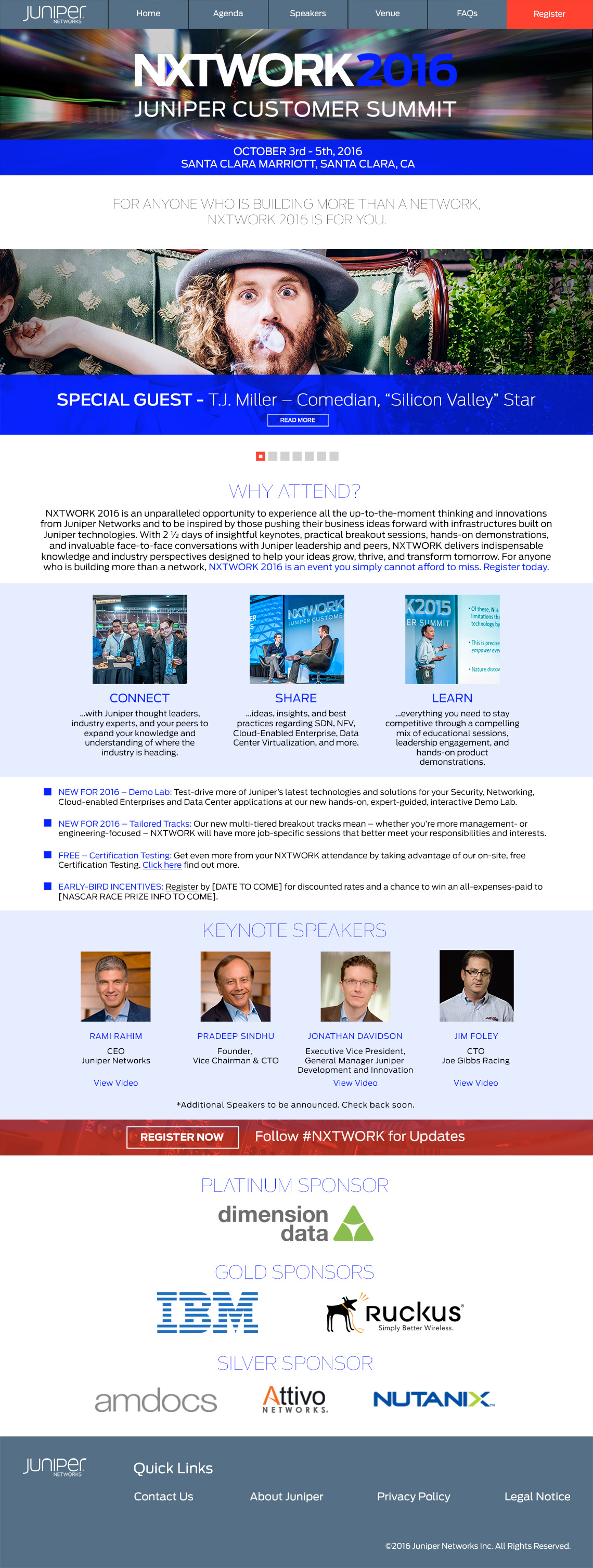 I was contracted to design a complete overhaul of NXTWORK2016 utilizing new brand colors, imagery, and style while keeping the original navigation interface from the 2015 website